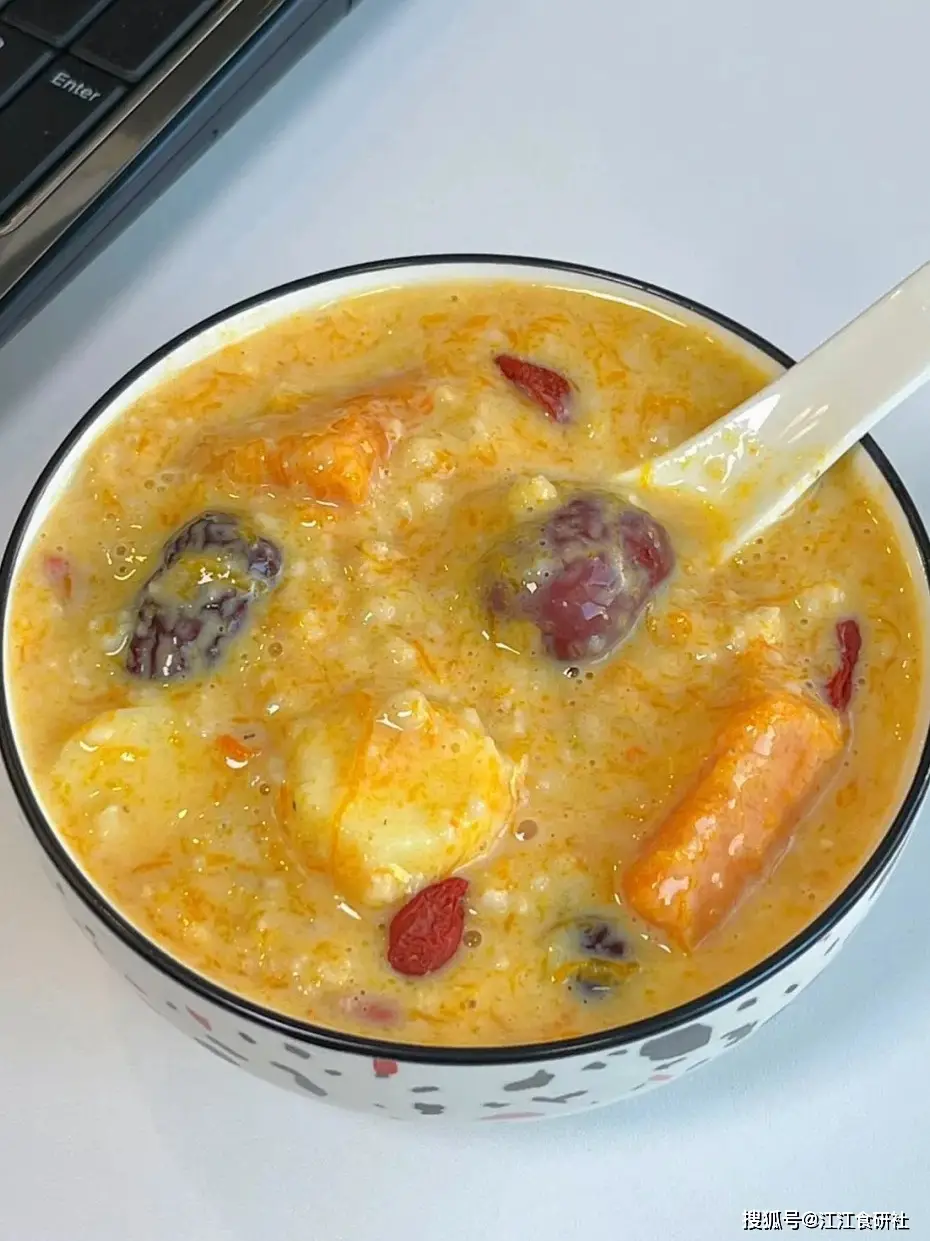 如果早上时间紧迫,那这碗粥就是为你量身打造的!南瓜和山药都是健脾胃的好手,燕麦片增加饱腹感,全程不过20分钟,暖心又暖胃。