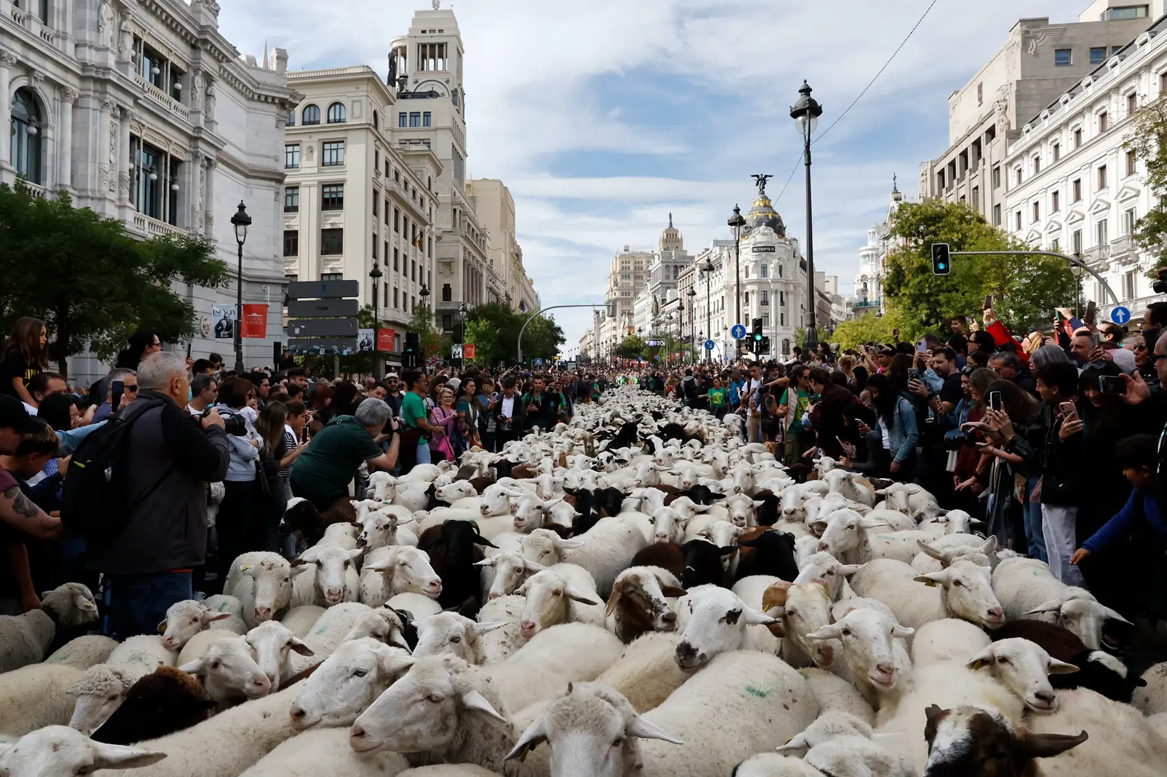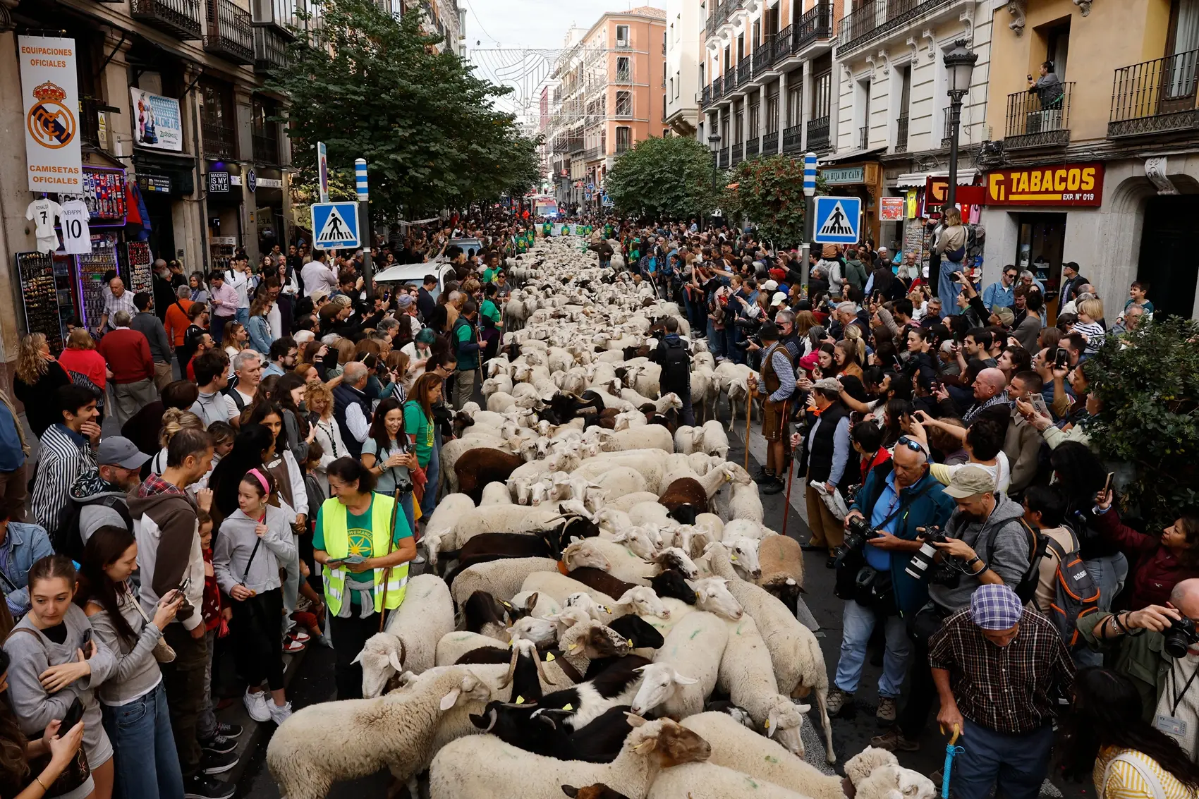 马德里平日人、车络绎不绝的主要街道和重要广场,突然有大批羊群经过,形成传统放牧与现代都会背景错置的奇异景观。在这个别具意义的节日里,人、车都得乖乖让路给羊咩咩通行。
