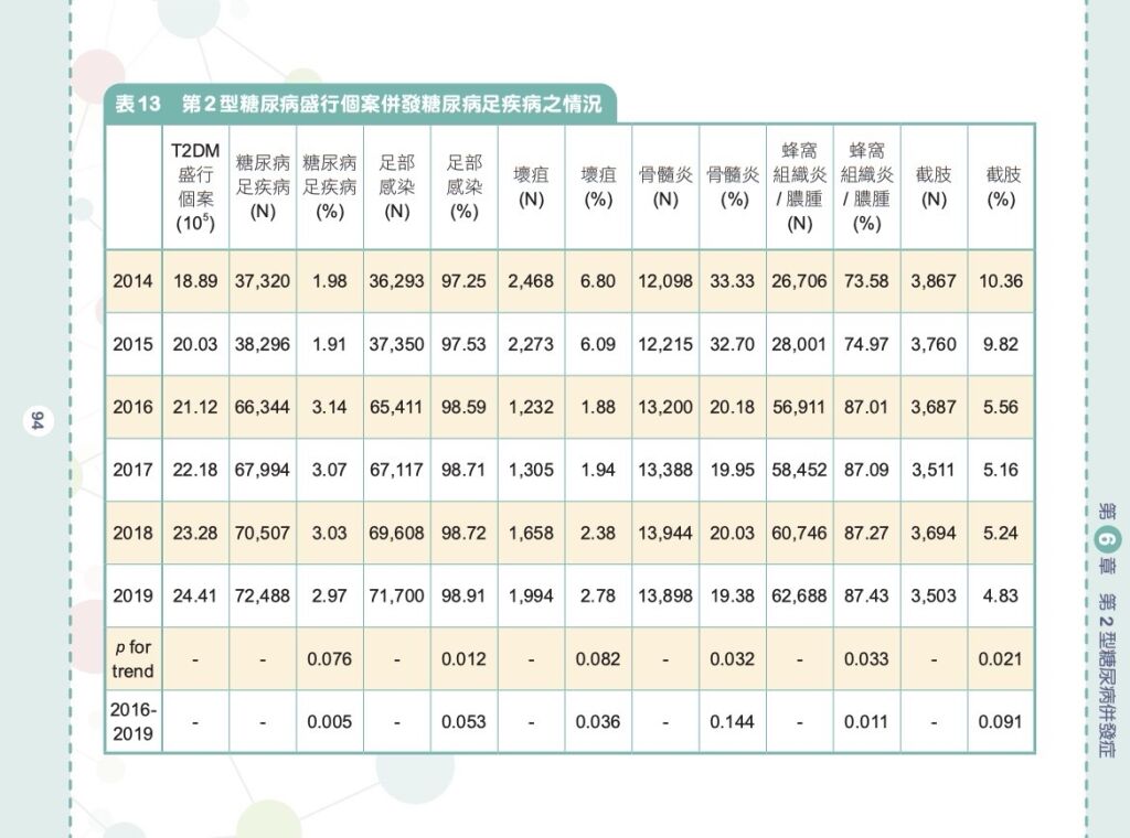 台湾第2型糖尿病并发糖尿病足统计(资料来源:《2024年台湾糖尿病年鉴第2型糖尿病》)