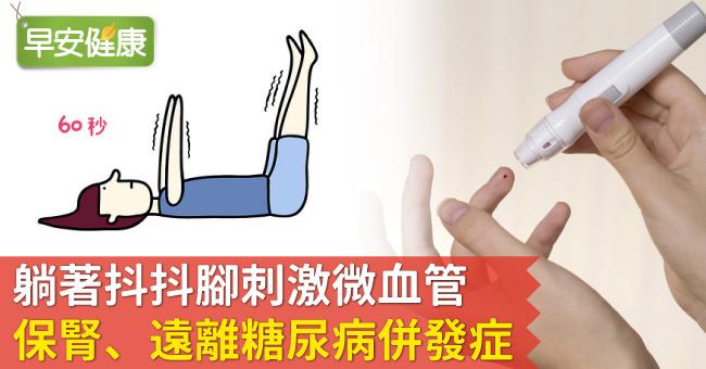 【早安健康/张承宇报导】糖尿病最可怕的莫过于眼疾、肾脏病、神经障碍等多种并发症,随病情发展,最严重可能造成失明、脑梗塞、心肌梗塞等严重后果。而其实这些严重并发症,大多和糖尿病造成的微血管异常脱不了关系。日本医学博士教一招,躺在床上抖抖四肢,改善微血管健康、糖尿病诸多并发症!