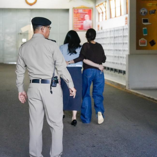 在正式进入监区之前,佩通坦和姐姐将手包都交给了助理,随后姐妹俩携手走了进去。