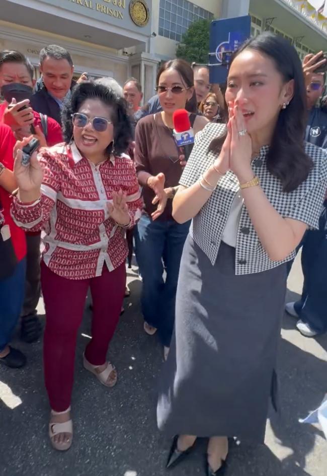 当地时间10月20日,身为泰国前总理的佩通坦·西那瓦,神采飞扬地出现在位于曼谷的克隆普伦中央监狱外,准备跟她的姐姐萍通塔·西那瓦一起,看望正在那里服刑的父亲他信·西那瓦。