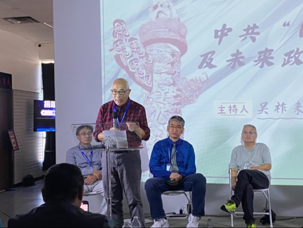 2025年10月18日,自媒体大V吴建民在“对话中国”智库、六四纪念馆联合主办的“中国论坛”上发言。(马尚恩/大..;