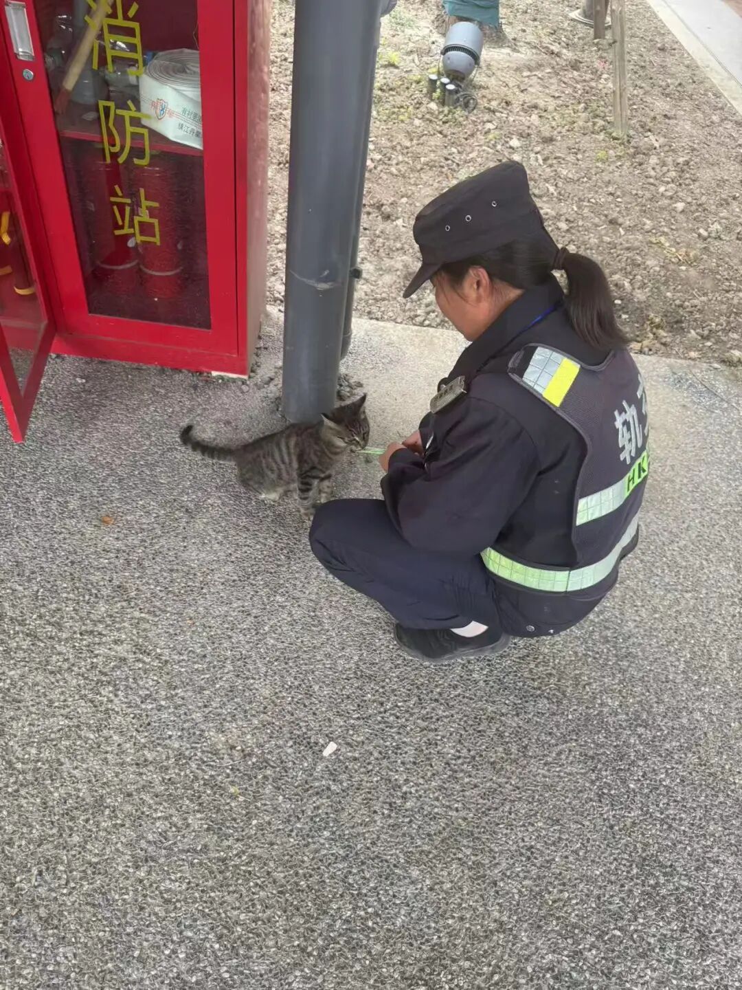 超市,买一支笔芯,才下过雨,地铁的女安保打开消防箱在里面拿出不知道的食物蹲在那里喂一只猫。已经过去了,再回头看一眼,闲聊中得知这是一只流浪猫,日常她值班的时候便会过来投喂,且在消防站的对面台阶下,她细心的为小猫搭了一个遮风挡雨的小窝。