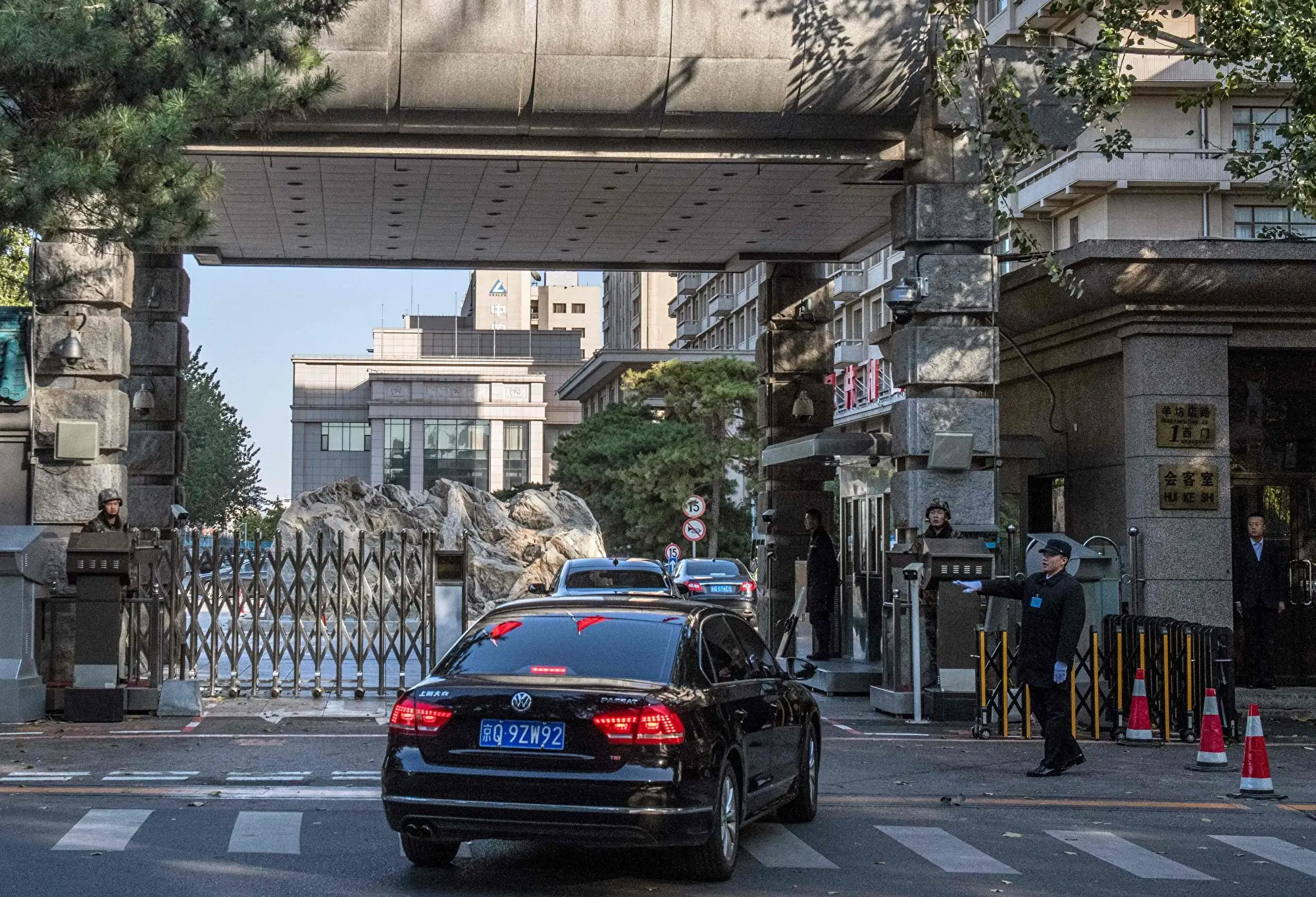 图为中共二十届四中全会会场京西宾馆出入口,资料照。(Nicolas Asfouri/AFP)