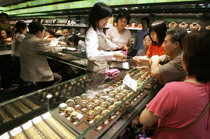 图为示意图。图为香港一家金店昔日的繁华景象。(Samantha Sin/AFP)