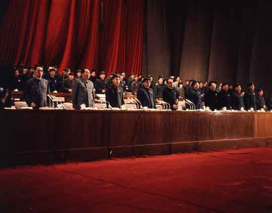 终于等到4月1日下午举行大会,会场在人民大会堂。60年代的人民大会堂,只用于举行大型会议和中央领导人办公、接见活动,从不对外开放。平时四周遍布岗哨,不准群众接近,偏偏它又处于北京市区中心,过往群众无不对它充满了神秘感。现在,1500多名代表和几百名大会工作人员齐集人民大会堂,要想不让外界察觉,实在是一件不容易事。大会的组织者在这方面可谓煞费苦心。