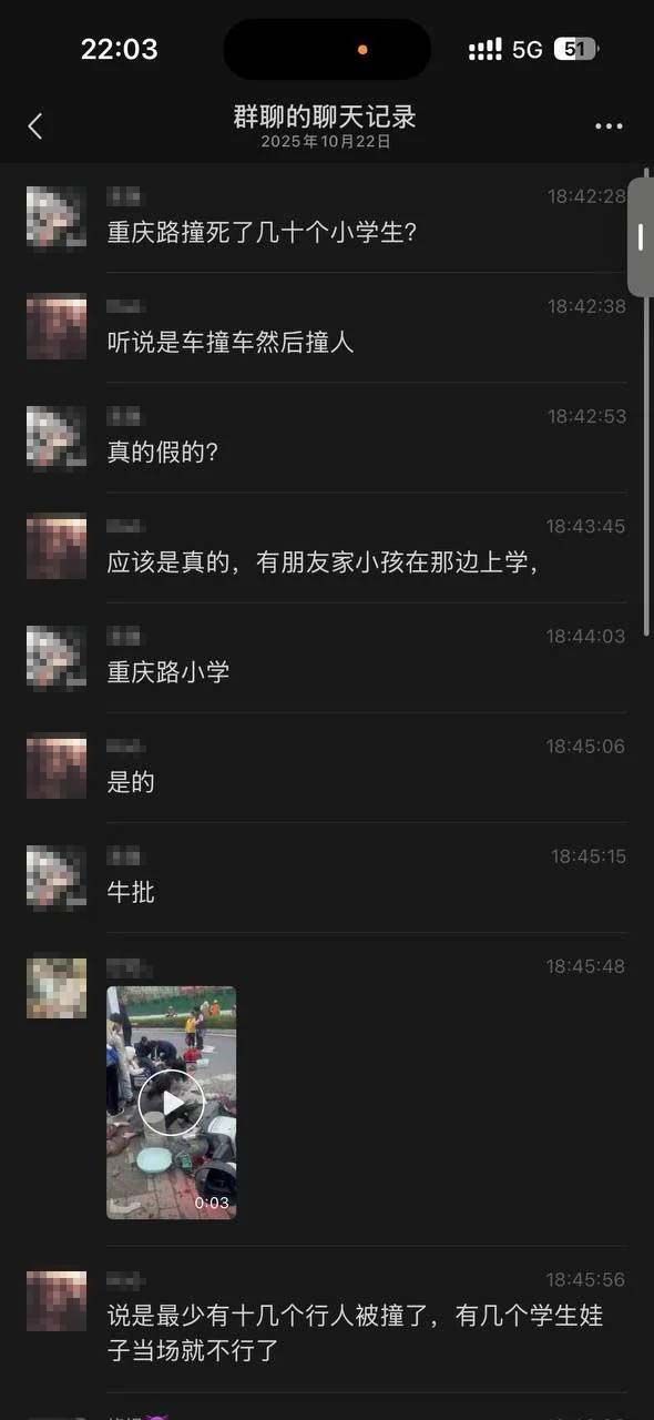 后续视频显示,多名儿童和家长倒地不起,有孩子被撞出十多米远。还有视频显示,马路对面也有孩子和家长倒下一片,疑似冲撞不止发生一次。