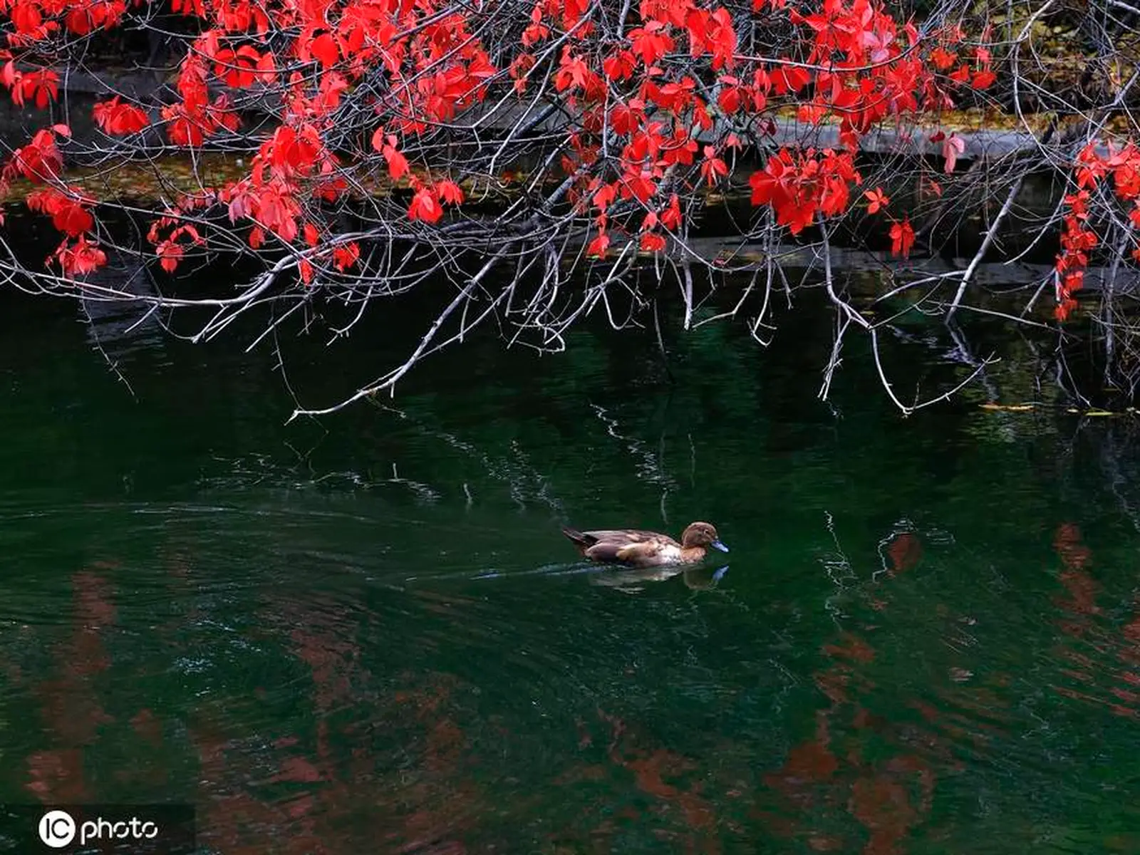 Herastrau公园的湖面被秋风揉皱成金箔,野鸭群划开粼粼波光,在倒映的栗树与悬铃木间织就流动的锦缎。