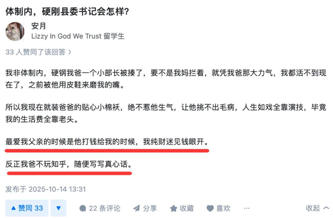 自爆家底,还自爆自己的爸爸在外面有私生子女,这么愚蠢的自爆,不免让我觉得这个女留学生要么是脑子不太灵光,要么就是个反串的了。