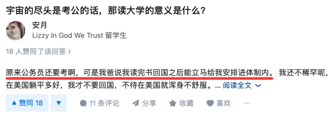 这位所谓的女留学生表示,她自己并不知道公务员还要考,她说她爸爸告诉她,读完书后回国,就能立马给她安排进体制里。