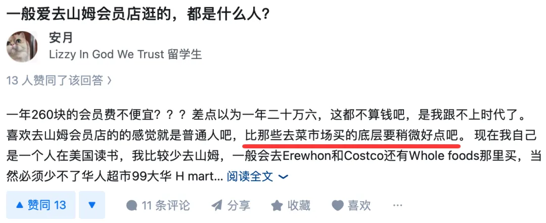 而且她还说了,去山姆超市买东西的,是普通人,比去菜市场买菜的底层人好一点: