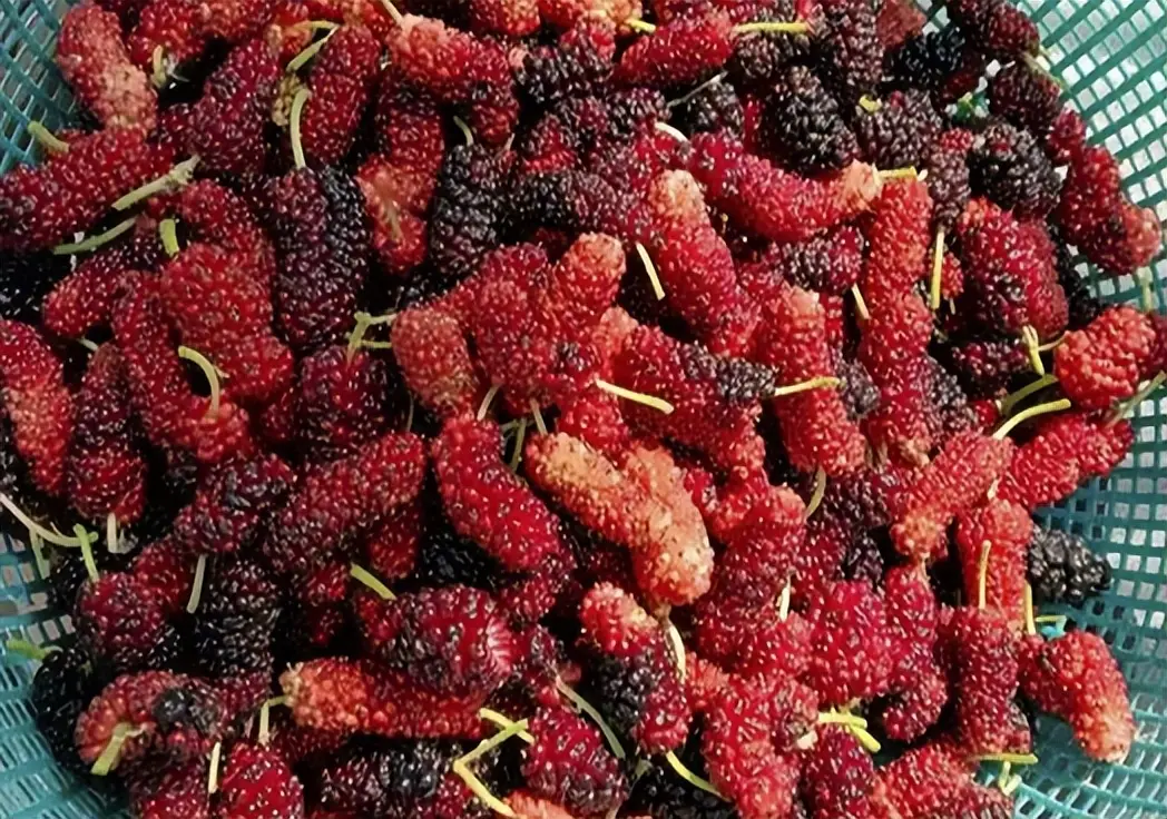 六是桑葚:桑葚是一种季节性很强的水果,每100克桑葚含有约1.7克蛋白质。它含有丰富的花青素,具有抗氧化、保护眼睛的作用。桑葚中的蛋白质能够为身体提供必要的营养支持,增强体质。新鲜的桑葚可以直接食用,也能用来酿酒或制作桑葚膏,具有很好的养生效果。