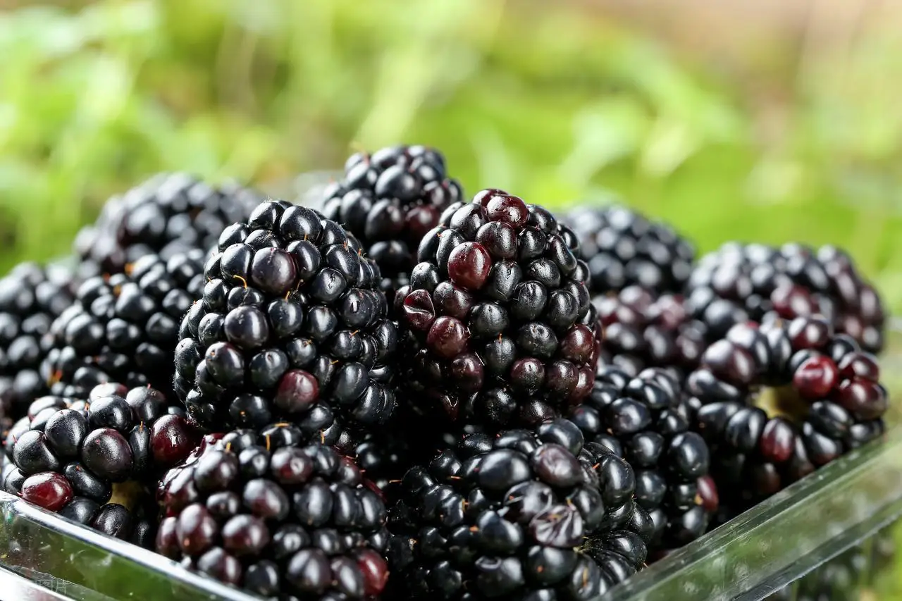 七是黑莓:黑莓是一种富含抗氧化物质的水果,每100克黑莓含有约1.4克蛋白质。它还含有大量的维生素C、维生素K和膳食纤维。黑莓中的蛋白质有助于身体组织的修复和生长,其丰富的抗氧化剂能够抵抗自由基的伤害,延缓衰老。可以将黑莓加入酸奶中,或者制作成黑莓果酱,涂抹在面包上,增添美味与营养。