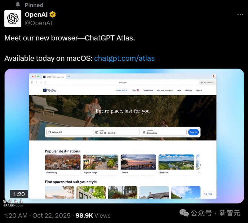 就在刚刚,OpenAI发布了一款以ChatGPT为核心打造的全新浏览器——ChatGPT Atlas。
