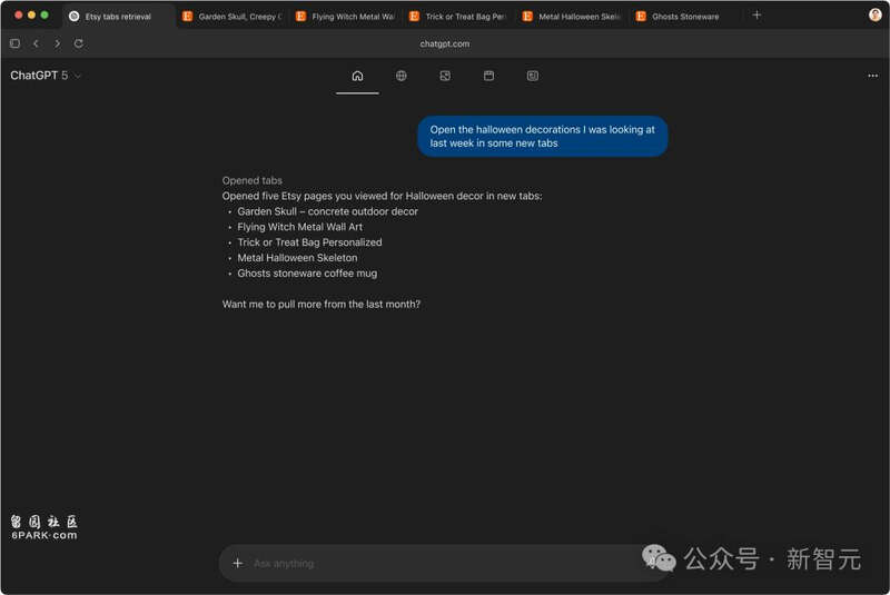 输入“重新打开我昨天看过的那些鞋子”或“整理一下标签页”,剩下的就放心交给ChatGPT吧。