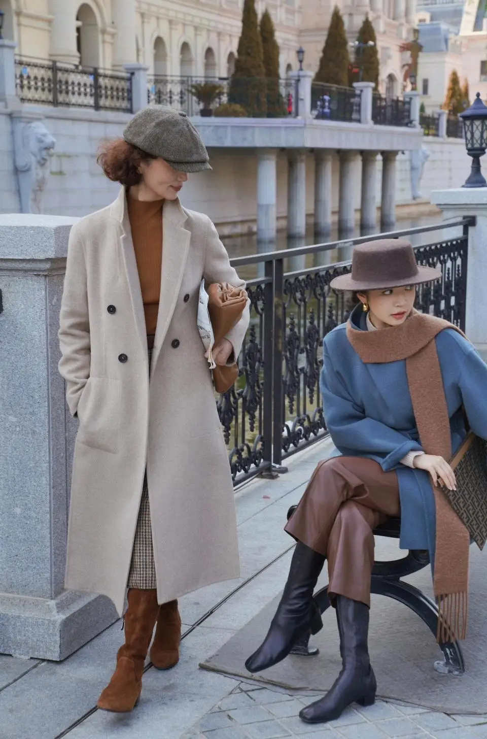 担心出错的情况下,直接选择下面这种白色的大衣外套,或者是短款的大衣外套,你直接搭配上白色的直筒裤或者是半身裙,脚上穿了一双黑色的皮质中筒靴就够,简简单单更高贵。