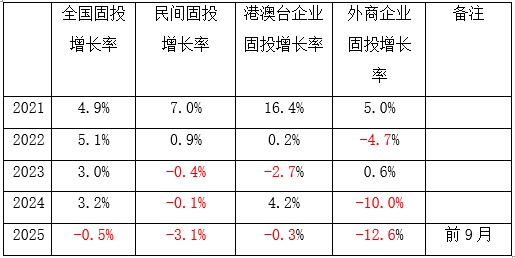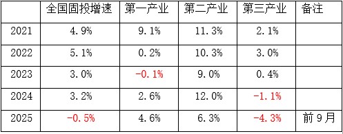 因此,“十四五”数据就很难看了(见下表)。甚至,2025年1-9月,中国固定资产投资累计下降0.5%,这是自2020年10月以来首次出现负增长。另外,根据官方数据,资本形成总额对经济增长贡献率,2021年至2024年分别为13.7%、46.8%、28.9%、25.2%,2025年前三季度为17.5%。