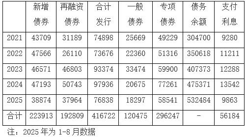 就显性债务而言(见下表),截至2020年12月末,全国地方政府债务余额256,615亿元;2020当年,地方政府债券支付利息7,963亿元。而到2025年8月,仅4年8个月,全国地方政府债务余额就翻番,激增至532,484亿元。即使当局用手段延长债务期限、降低利率(截至2020年12月末,地方政府债券剩余平均年限6.9年,平均利率3.51%;截至2025年8月末,地方政府债券剩余平均年限10.4年,平均利率2.88%),2025年前8月支付利息高达9,863亿元,比2020全年数字还高出近2000亿元。(至于隐性债务,更严重,但缺乏真实数据,本文存而不论。)
