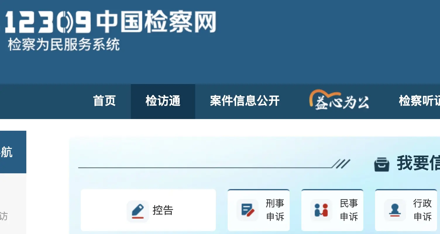 10月24日,一知乎网友发帖提醒,中共检察院系统的“12309检察服务中心”程序已经更改为“12309检察中国网”,里面以前提交的控告及信访都是没有了。