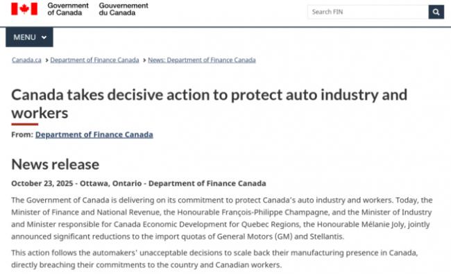 据多家加拿大媒体10月24日报道,这两家跨国制造商将不再能像以前那样,免于支付加拿大对特定数量的美国组装汽车征收的报复性关税。