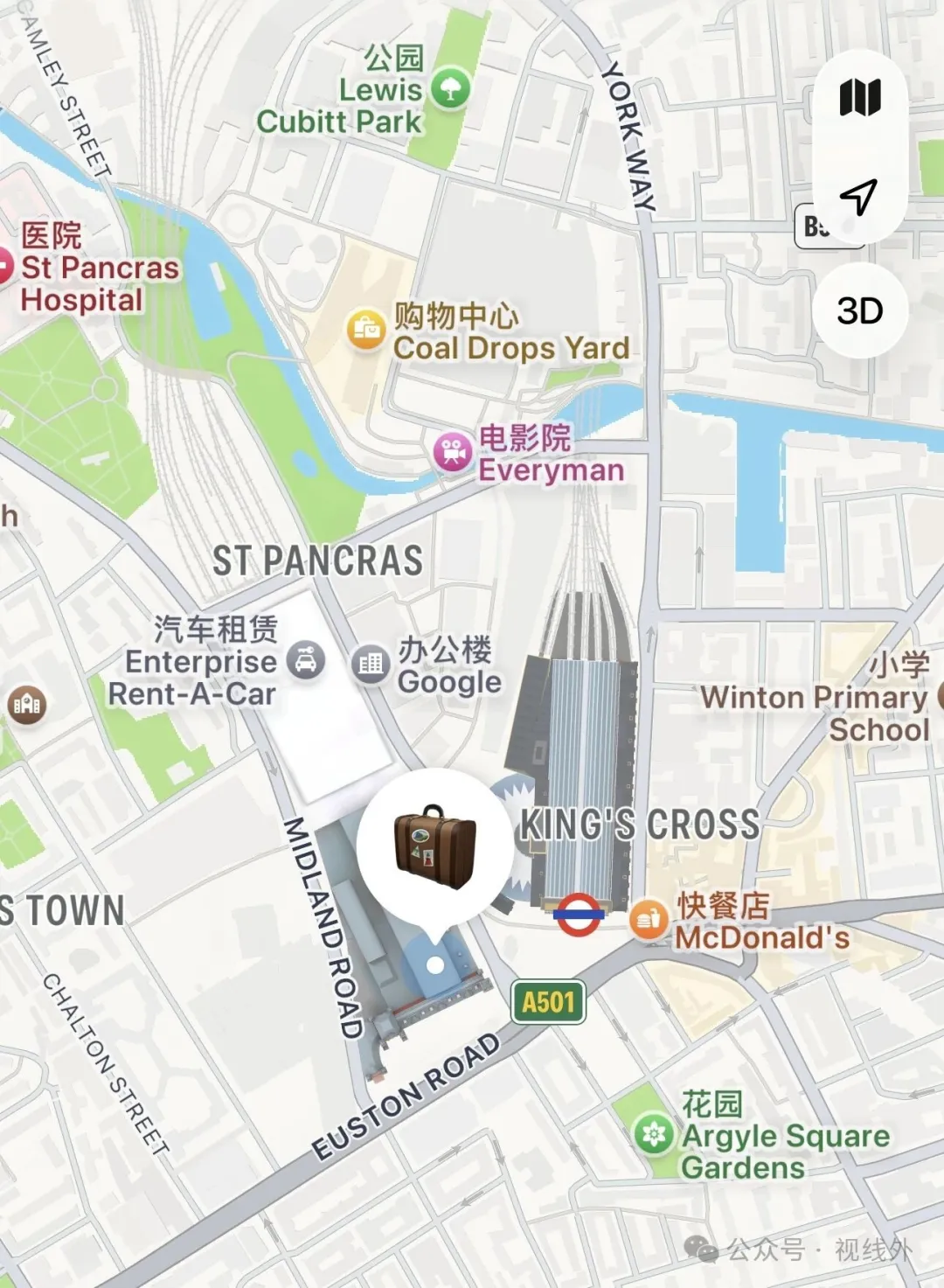 iPhone查找功能截屏,背包的位置永远停留在了圣潘克拉斯火车站/作者自制,2025