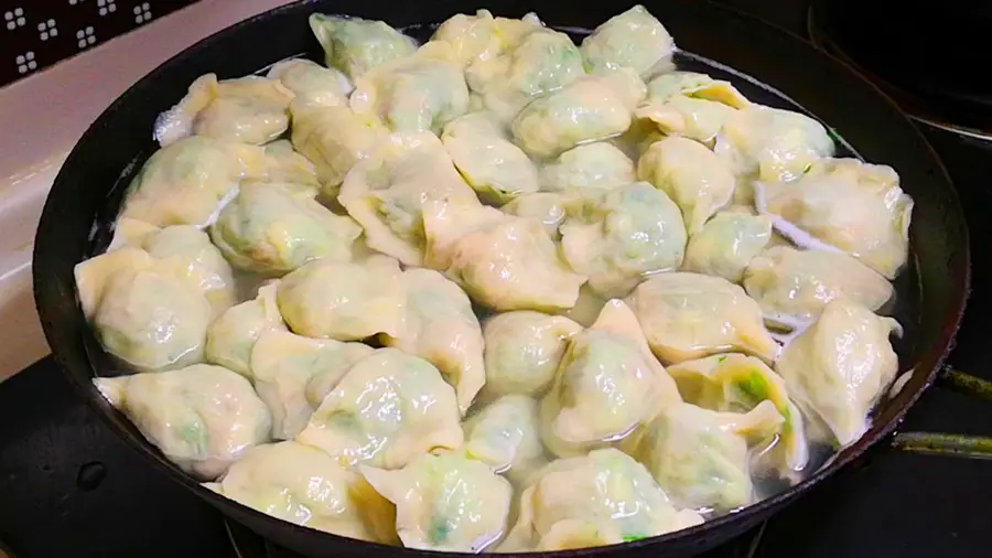 6.煮饺子,水开后加点盐,防止饺子破皮,再下入饺子,点三次凉水,包子浮起来就熟了,不要煮太久,避免韭菜变得太过软烂。