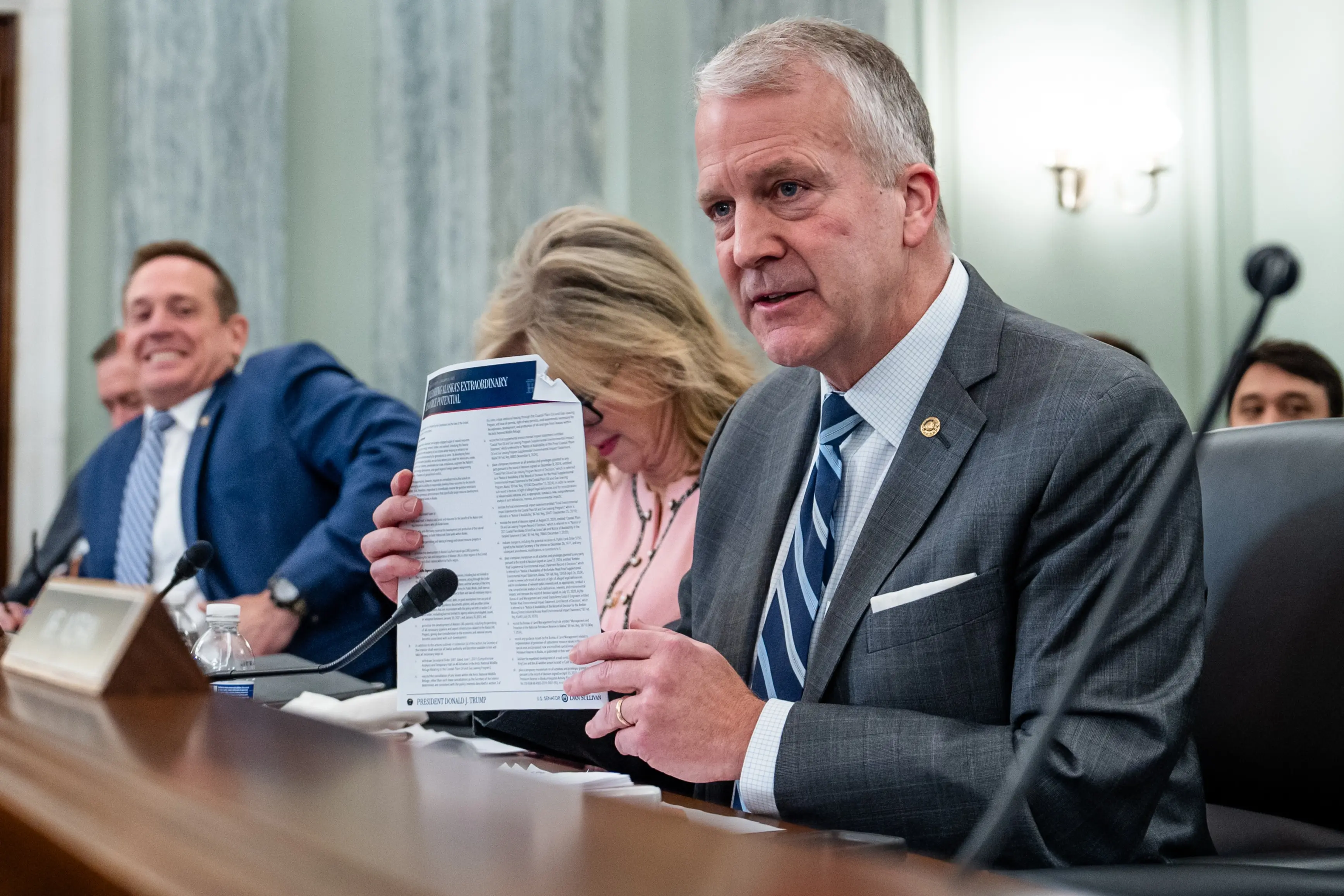 2025年1月29日,华府国会大厦,联邦参议员丹‧沙利文(Dan Sullivan)在听证会上发言。(Madalina Vasiliu/大.纪.元;)