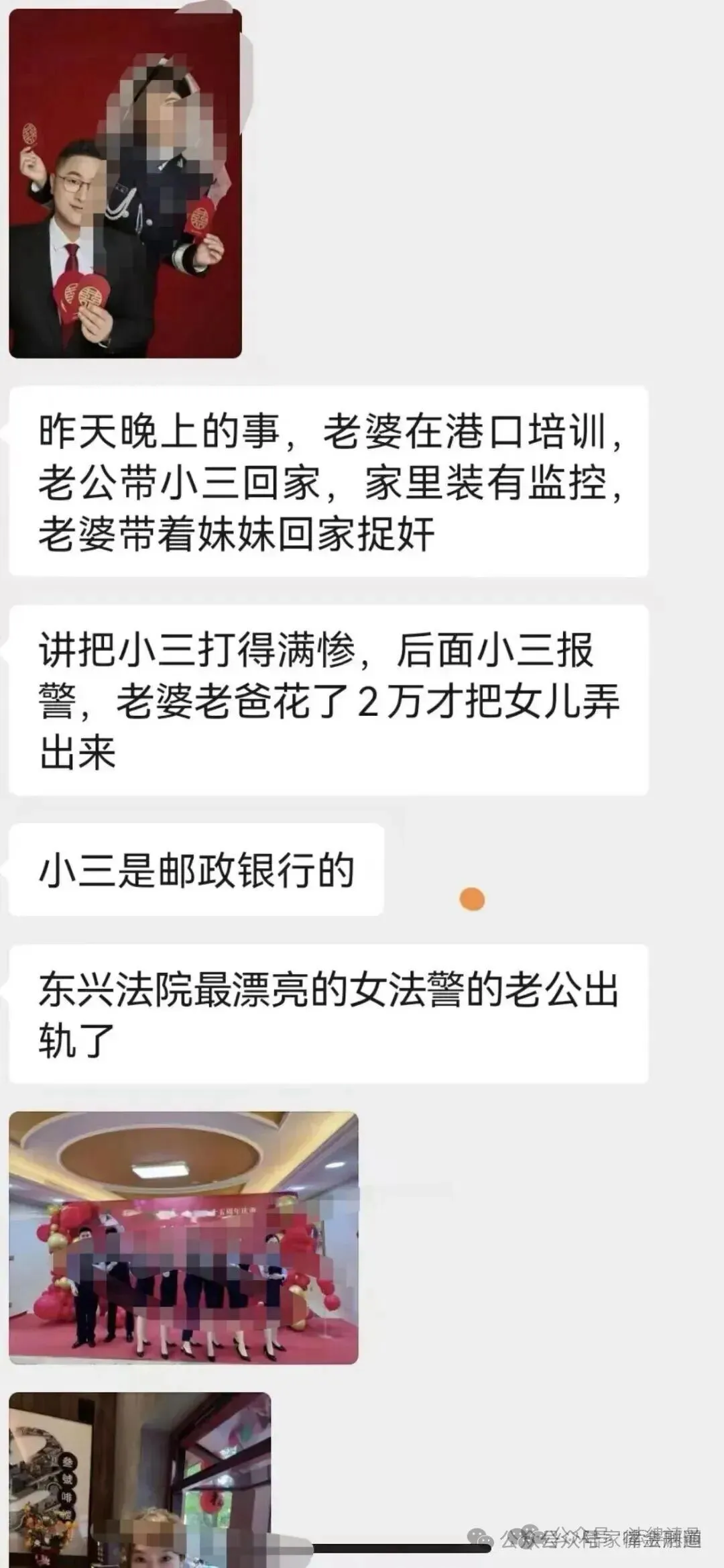 网传截图显示,周某财婚内出轨当地邮储银行一名女员工,被妻子“抓了现行”。