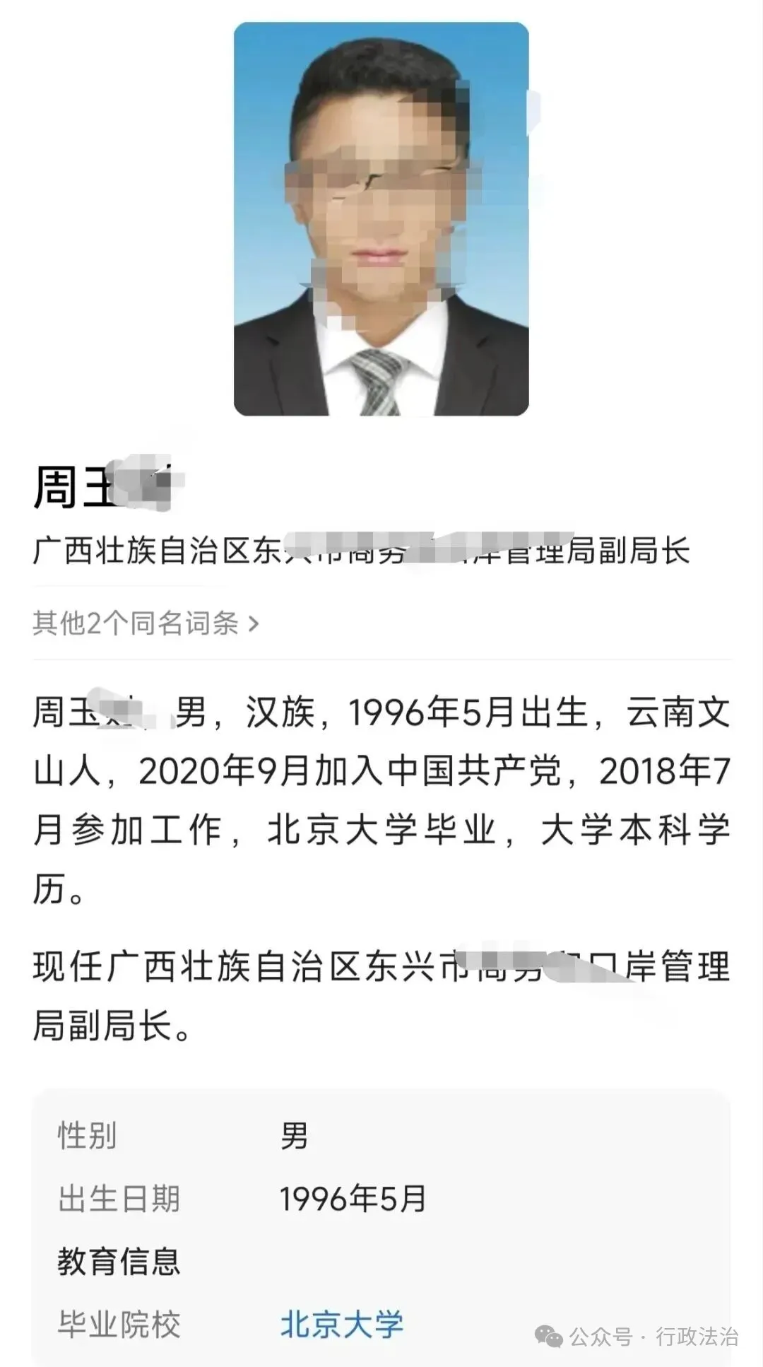 资料显示,周某财,汉族,1996年5月出生,云南文山人,2020年9月加入中国共产党,2018年7月参加工作,北京大学毕业,大学本科学历。