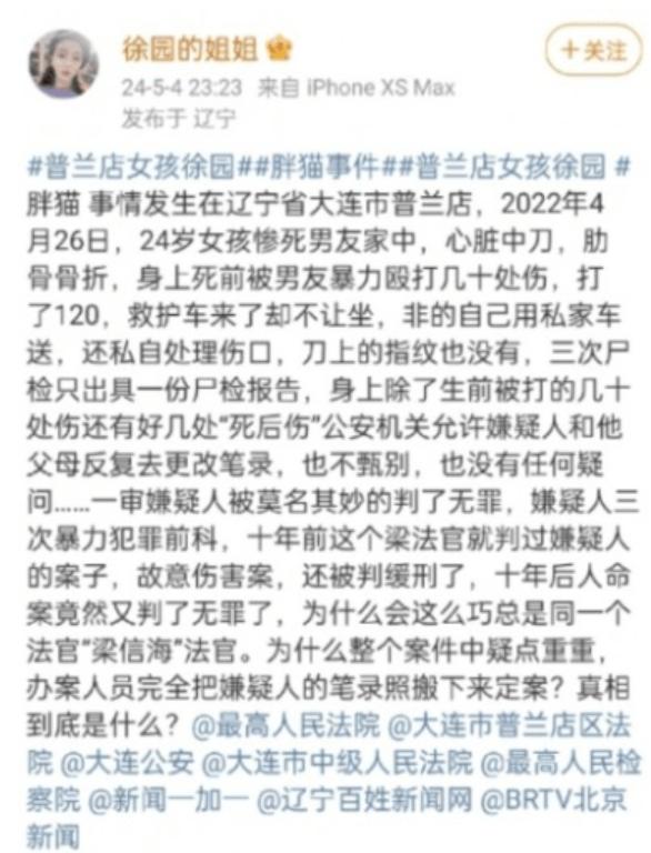 徐园姐姐发文控诉并质疑裁决不公。微博@徐园的姐姐