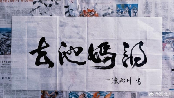 2025年9月26日,微博博主“凛北川”因于朦胧案被封口后,发布书法作品“春池嫣韵”。网民指分明就是“去他妈的”。(“凛北川”微博)