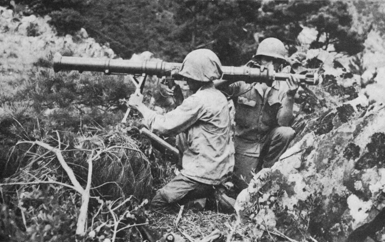 1950年7月20日,美军士兵在韩国阻击朝鲜军队时,操作M20火箭发射器向敌人开火。(美国陆军历史中心)