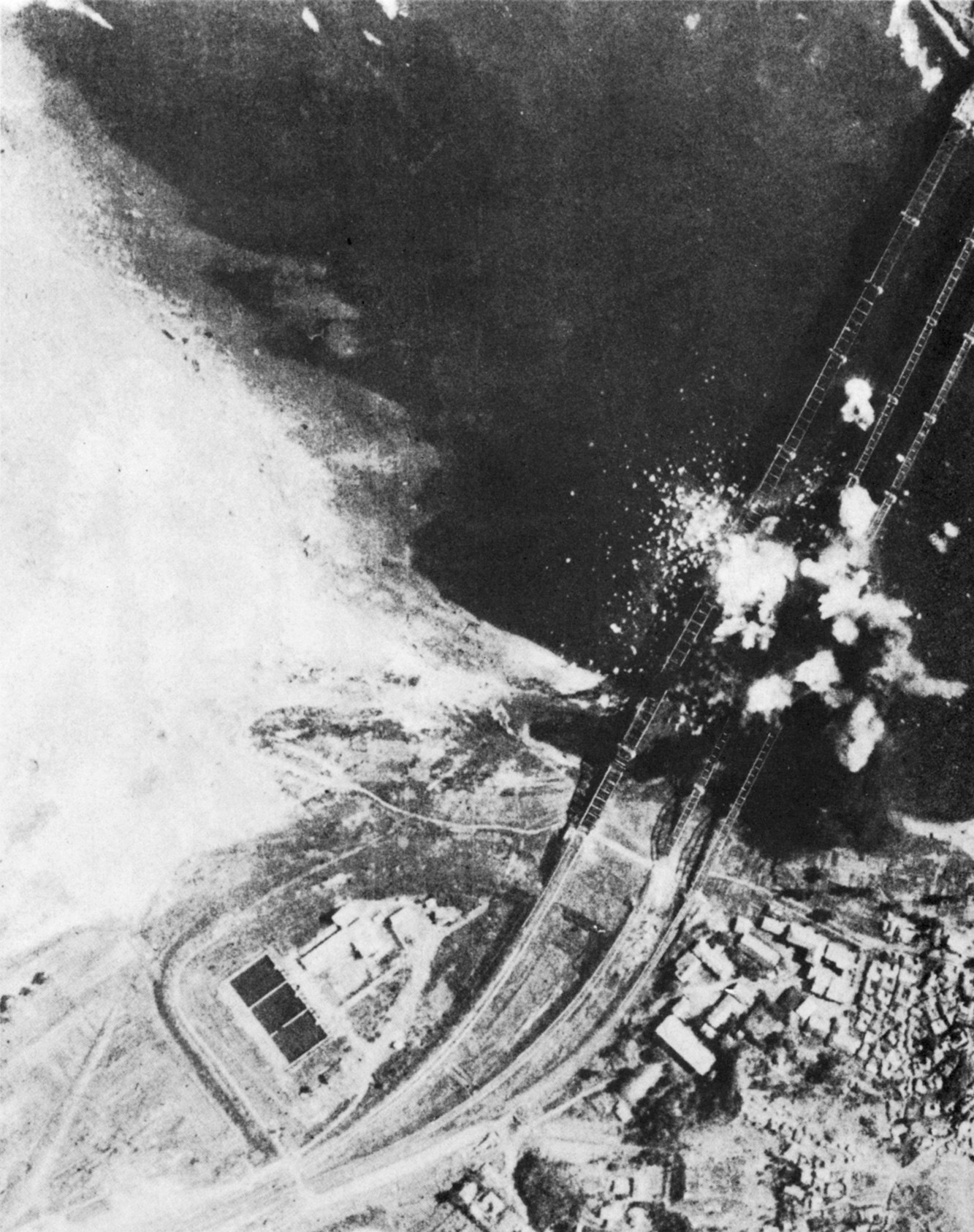 1950年7月3日,美军空袭朝鲜平壤附近的铁路桥梁,切断朝鲜军队的补给线。(美国陆军历史中心)