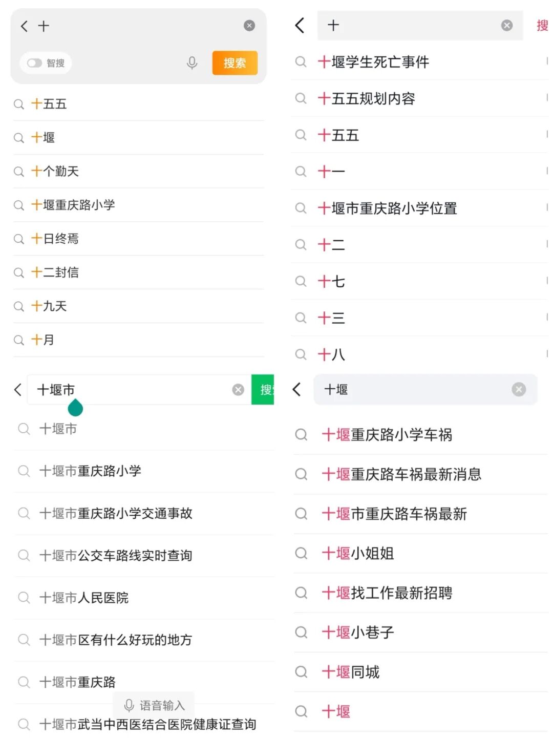 各平台搜索界面,点击对应联想词条检索,难见事故相关内容。