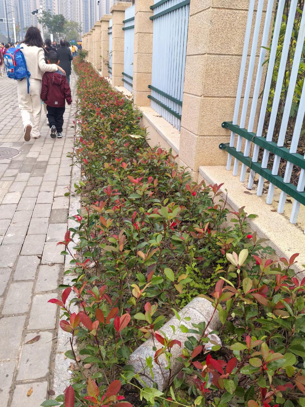 事故发生后,重庆路小学的学生家长仍在正常接送孩子,一个未被注意到的拦路石躺在花坛中。(图_受访者供图)