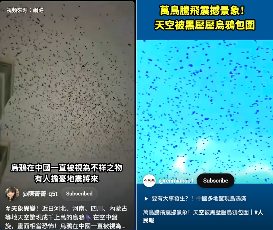 今日,北京、河北、河南、内蒙古等多地出现大量乌鸦盘旋的怪异现象。(视频截图)