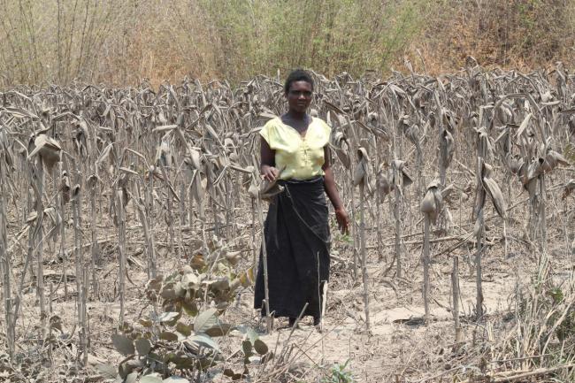 巴特谢巴·穆索莱站在她被毁的玉米地里。