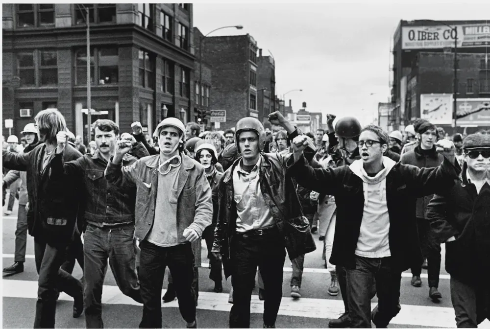 1969年地下气象员组织正在游行,这场名为愤怒日的活动,抗议对芝加哥七君子的审判(美国政府针对反越战的年轻人提起的一场诉讼)