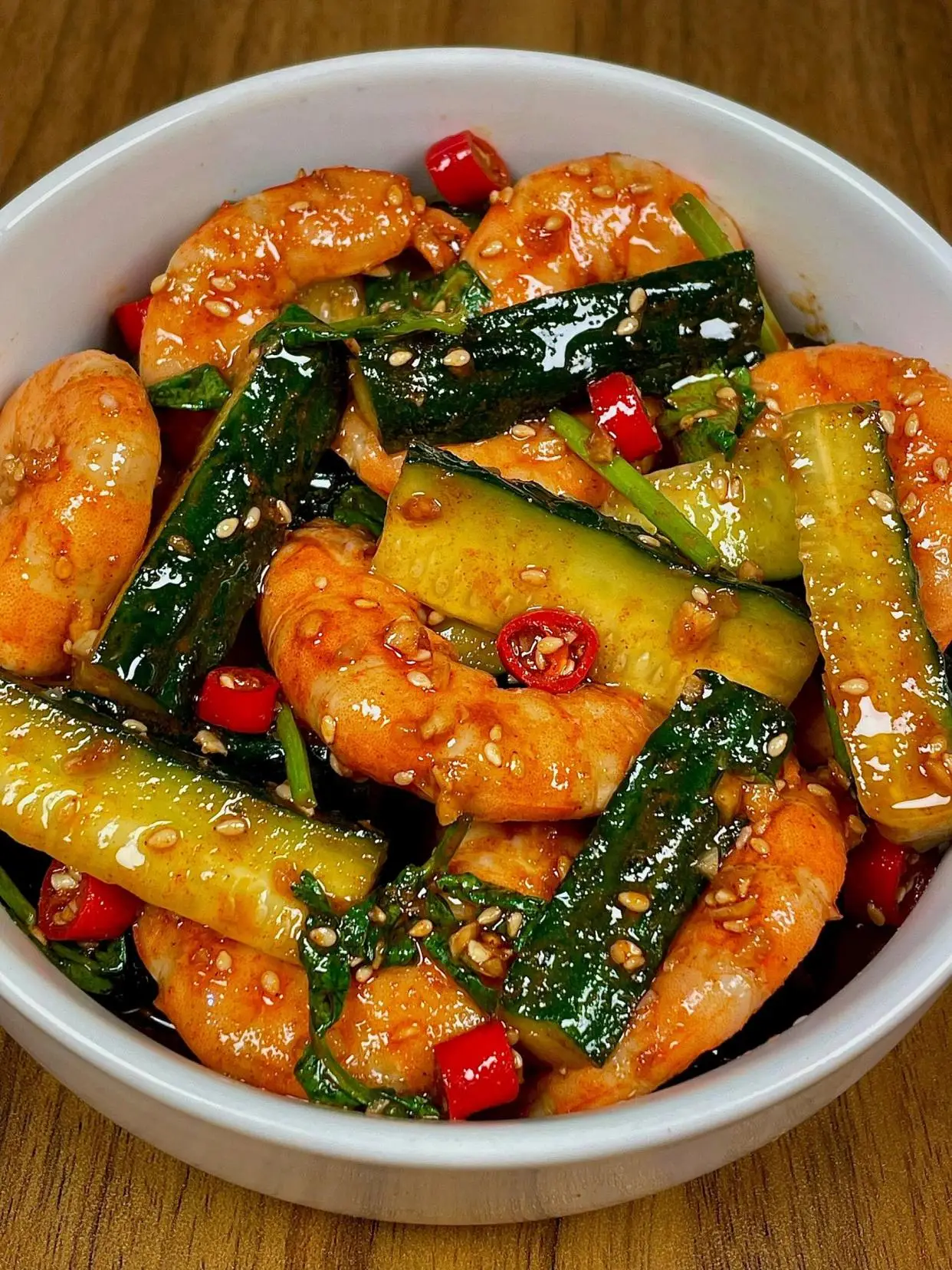 虾仁Q弹爽滑,黄瓜清脆爽口,酸辣酱汁渗透其中,酸爽开胃,香菜的点缀更是增添了清新感,吃起来特别过瘾!