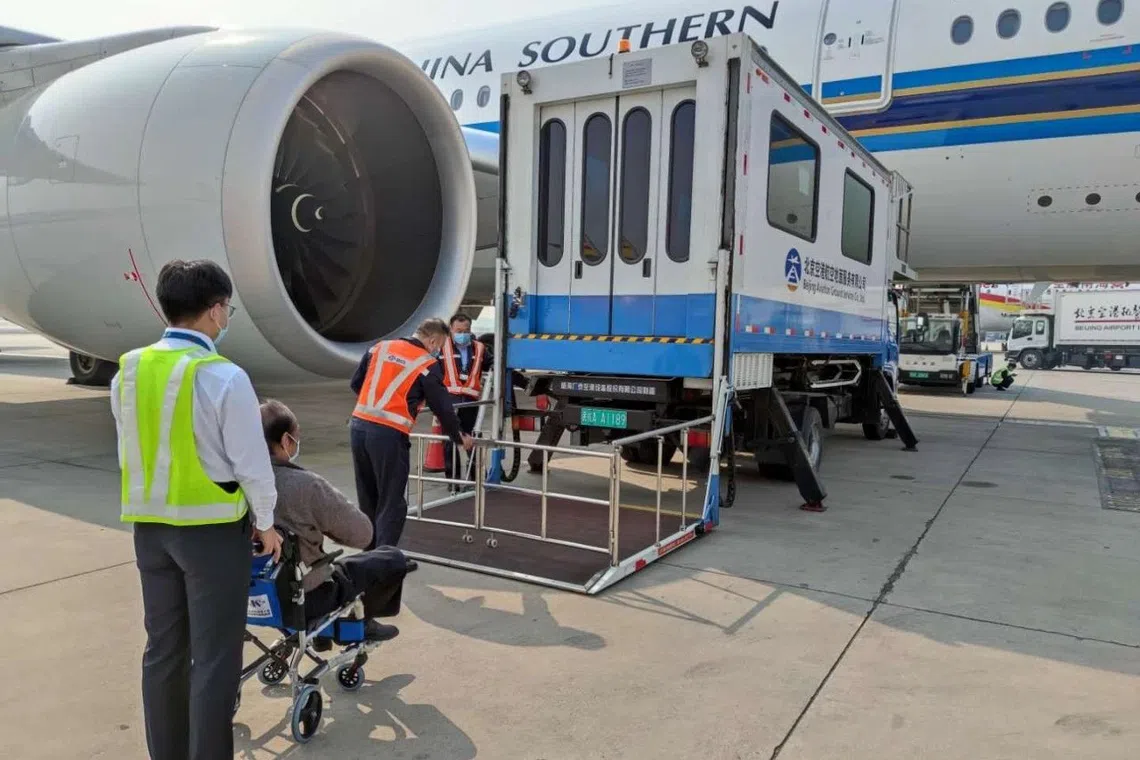 除了严苛的安检,远机位也令郑智化深感困扰。他说,他体谅机场廊桥不够用,飞机必须停在远机位。大机场有升降车可以协助轮椅人士,但遇上设备不足的机场,他有时必须顶着大雨和风寒,从机舱走下楼梯,再走到摆渡车,“根本是一场艰苦的马拉松之旅”。