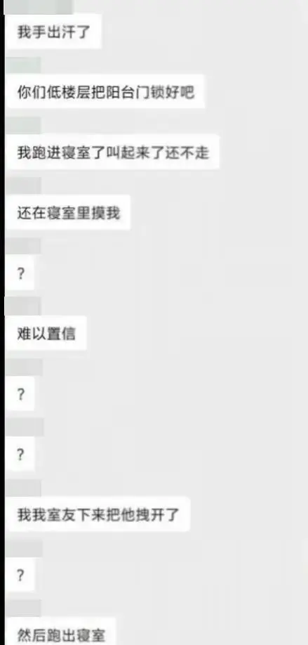 其实从这些细节就能看出来,事发初期学生心里也慌得很,毕竟女生宿舍本来是大家觉得安全的地方,结果凌晨有人闯进来,还做出这种不轨行为,换谁都会害怕。