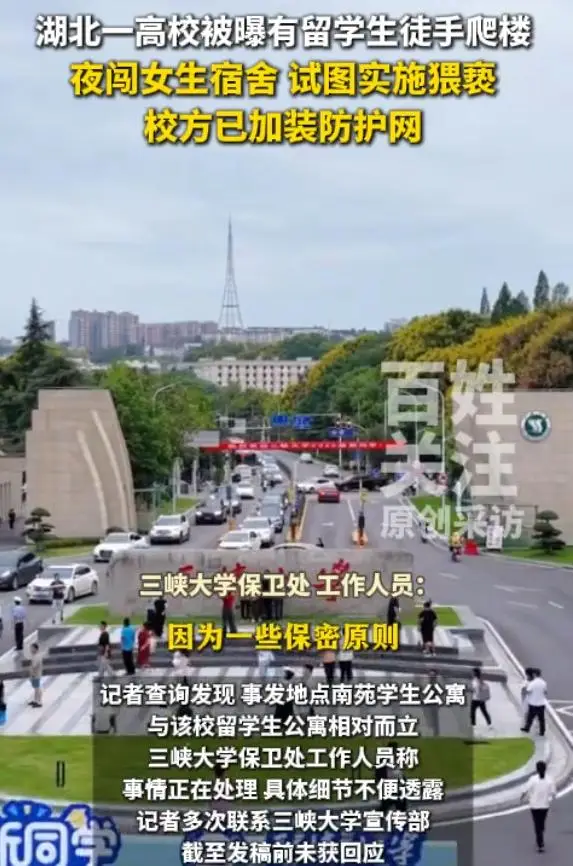 湖北宜昌三峡大学的南苑学生公寓因为一起外籍留学生深夜闯入女生宿舍的事件,一下子成了舆论关注的焦点。