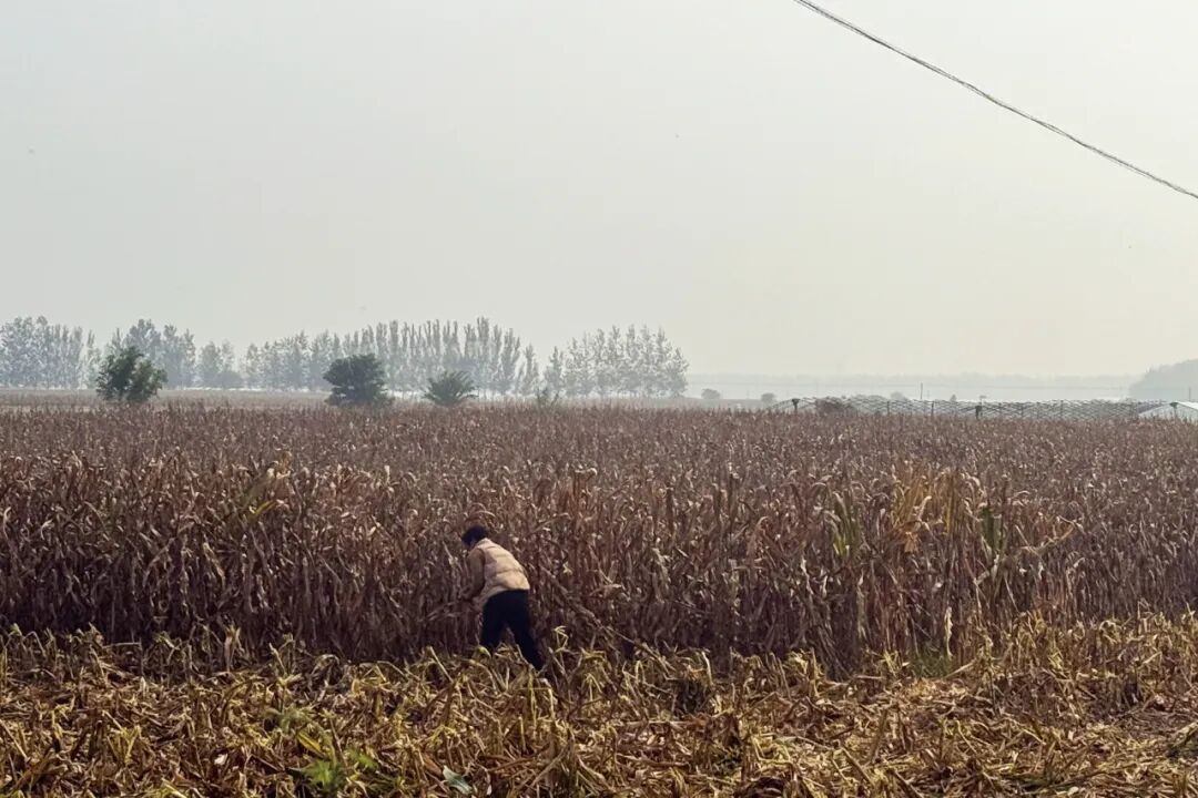 张梅终于等来了一个晴天。玉米地里,收割机轰隆作响,她弯腰捡起一个玉米棒子——个头小了些,但颗粒金黄,揣进兜里,另一只手拿着空的化肥袋。