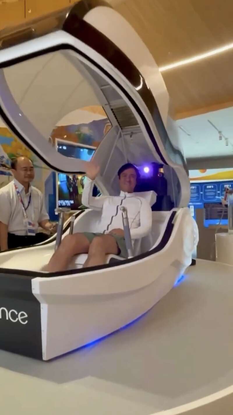 据了解,“未来人类洗澡机”主打全自动入浴,整个流程仅需约15分钟,透过细致的气泡与自动清洗技术,还会配合心跳和自律神经的状态播放最适合的音乐和影像,提供一种身临其境的疗愈体验,感觉就像坐在太空船里沐浴一样。