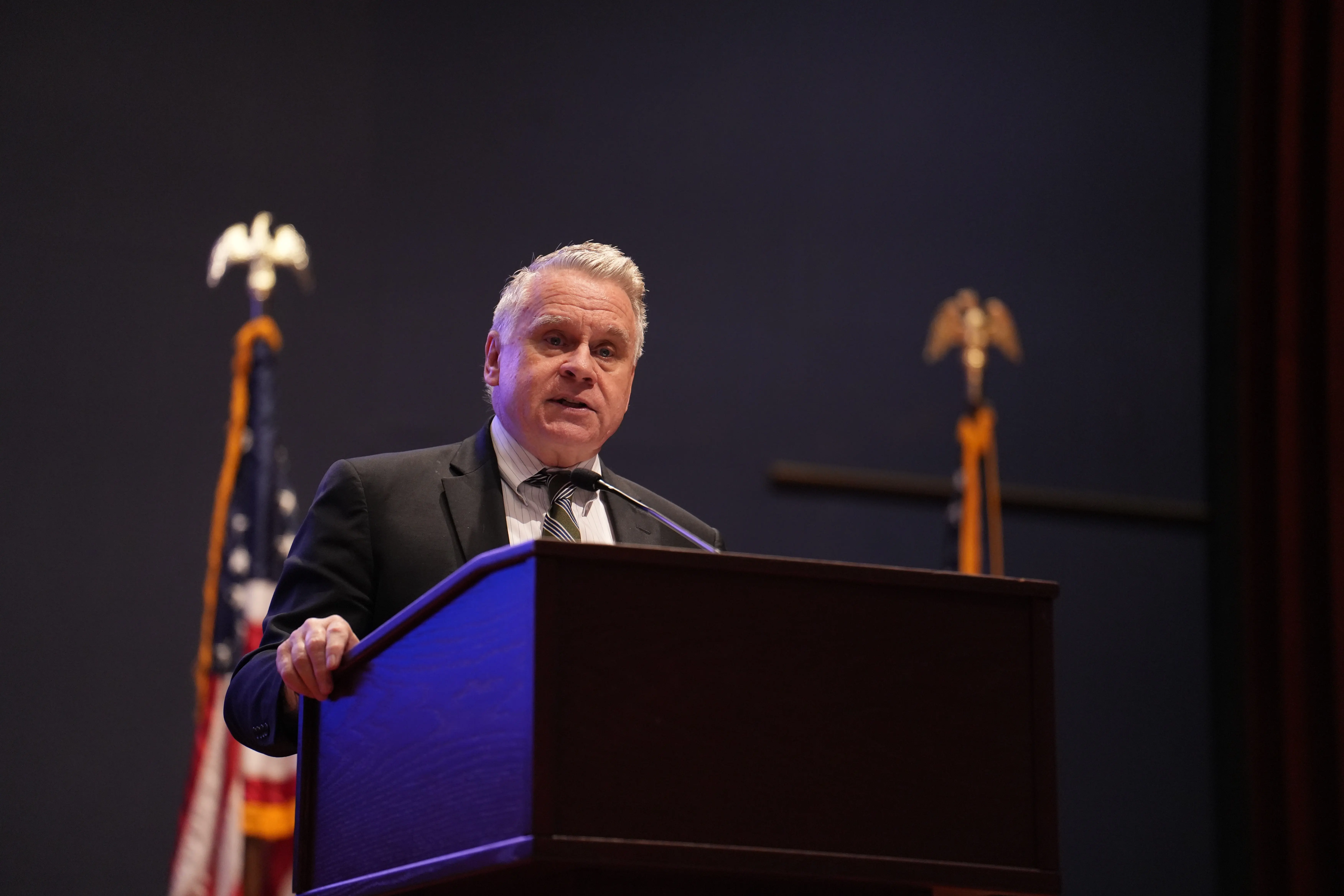 2025年3月5日,美众院对中共委员会主席约翰‧穆勒纳尔(John Moolenaar,中)在听证会上发言。(Madalina Vasiliu/英文大.纪.元;)