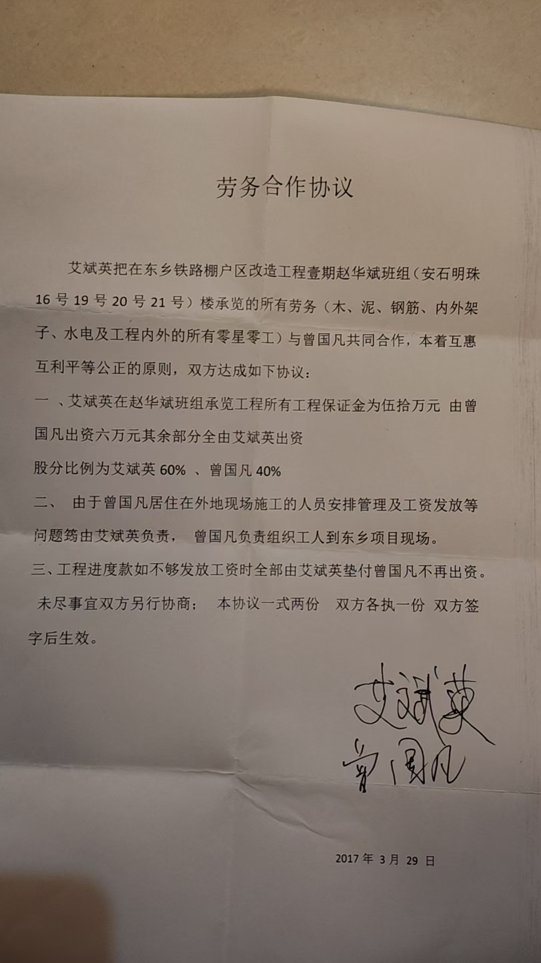 劳务合作协议。(受访人提供)