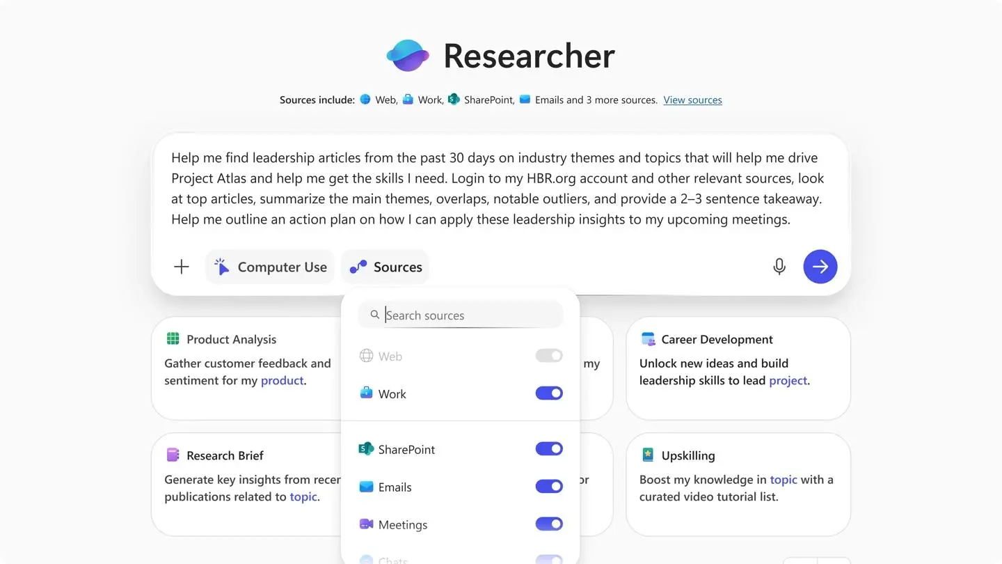 IT之家援引博文介绍,在安全的 Windows365虚拟机内部,Researcher智能体不再局限于纯粹的推理分析,而是可以执行浏览网站、登录受限信源以及从付费数据库中提取已验证信息等。