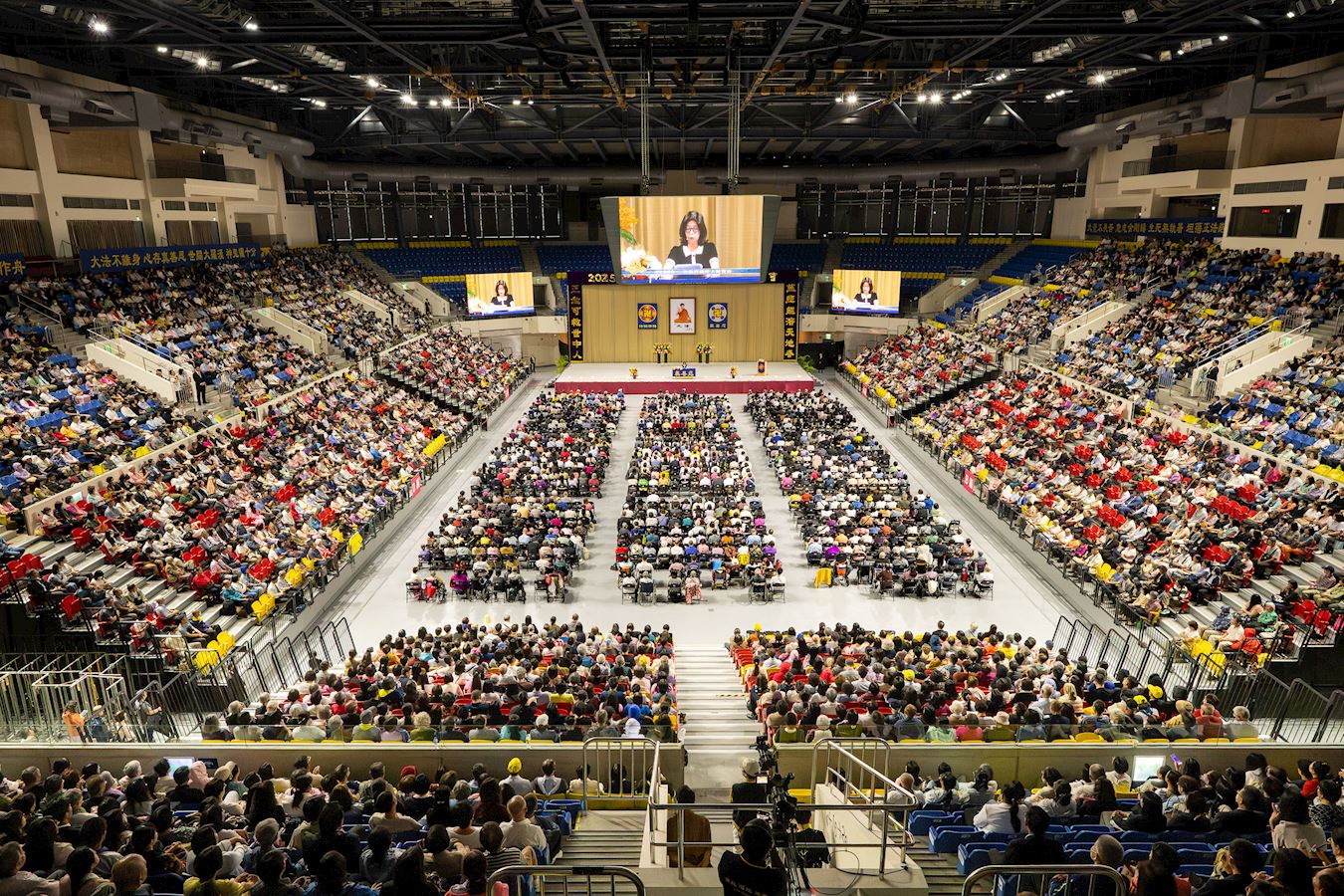 2025年10月19日,来自台湾、美国、加拿大、日本、韩国、马来西亚及香港的部分法轮功学员约六千人齐聚台北和平篮球馆,参加2025台湾法轮大法修炼心得交流会(台湾法会)。(宋碧龙/大.纪.元;)
