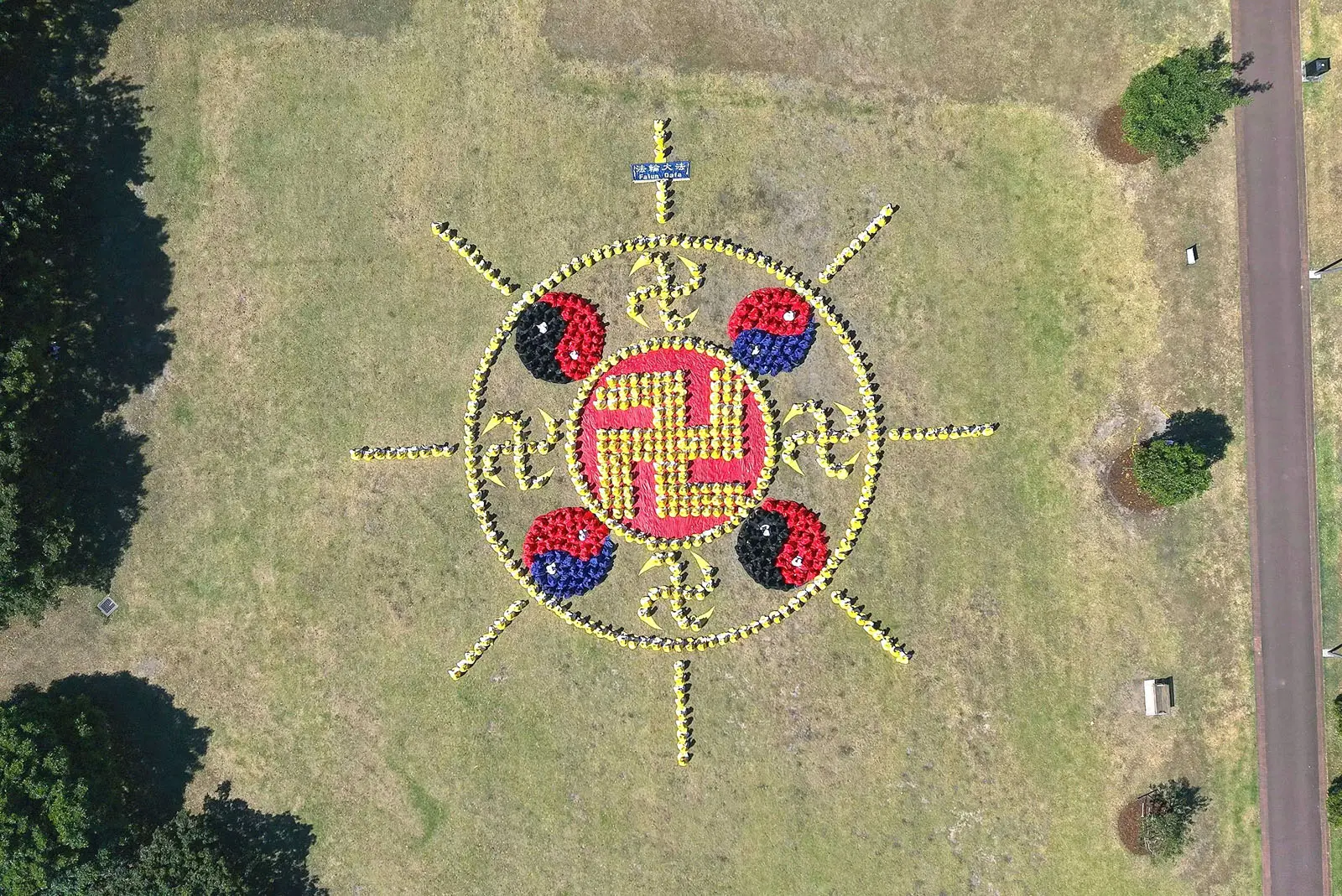 10月18日,约五千名法轮功学员在台北自由广场排字,排出历年来最大的法轮图形和“法轮常转”四字。